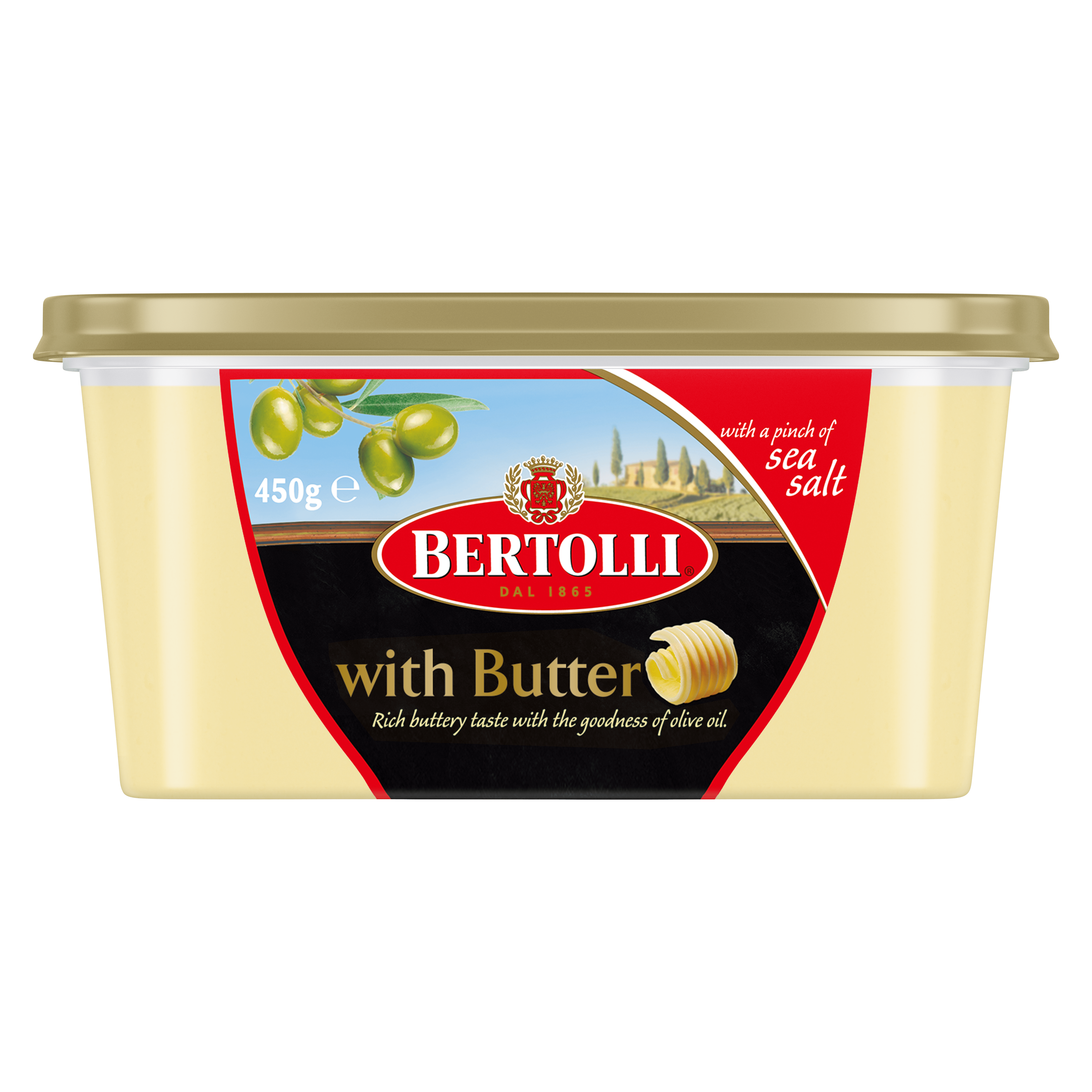 Bertolli with Butter is an irresistible spread that combines the goodness of olive oil with butter and a pinch of sea salt, giving you a delicious way to enjoy the taste of butter every day.